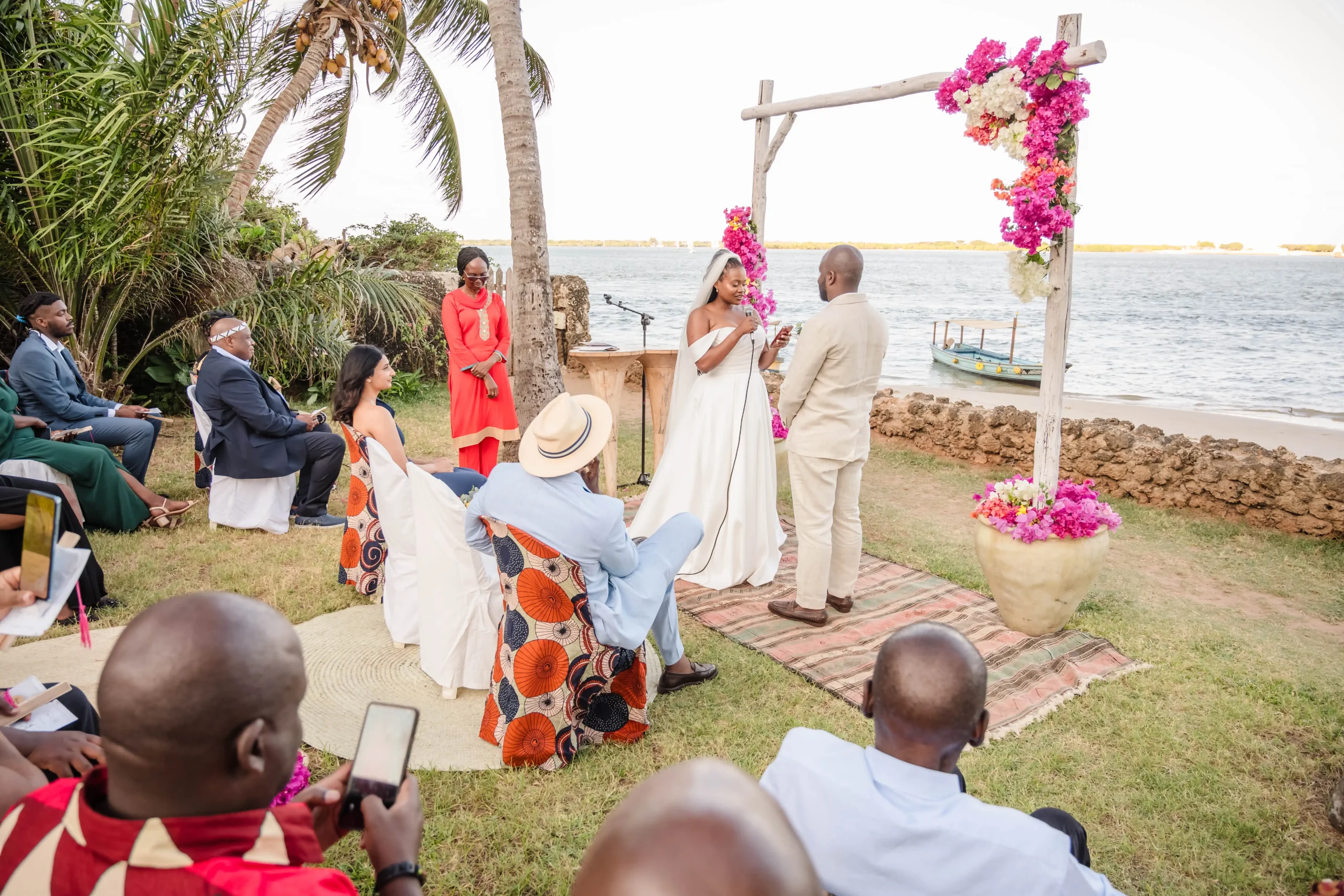 From the moment guests arrived, the atmosphere felt different—slower, intentional, and deeply connected to the surroundings. The gentle sound of the Indian Ocean and the iconic dhows drifting along the shoreline added a cinematic feel to every moment. Noah and Carthy chose Lamu not just for its beauty, but for the experience it offers: intimate, soulful, and truly unique.