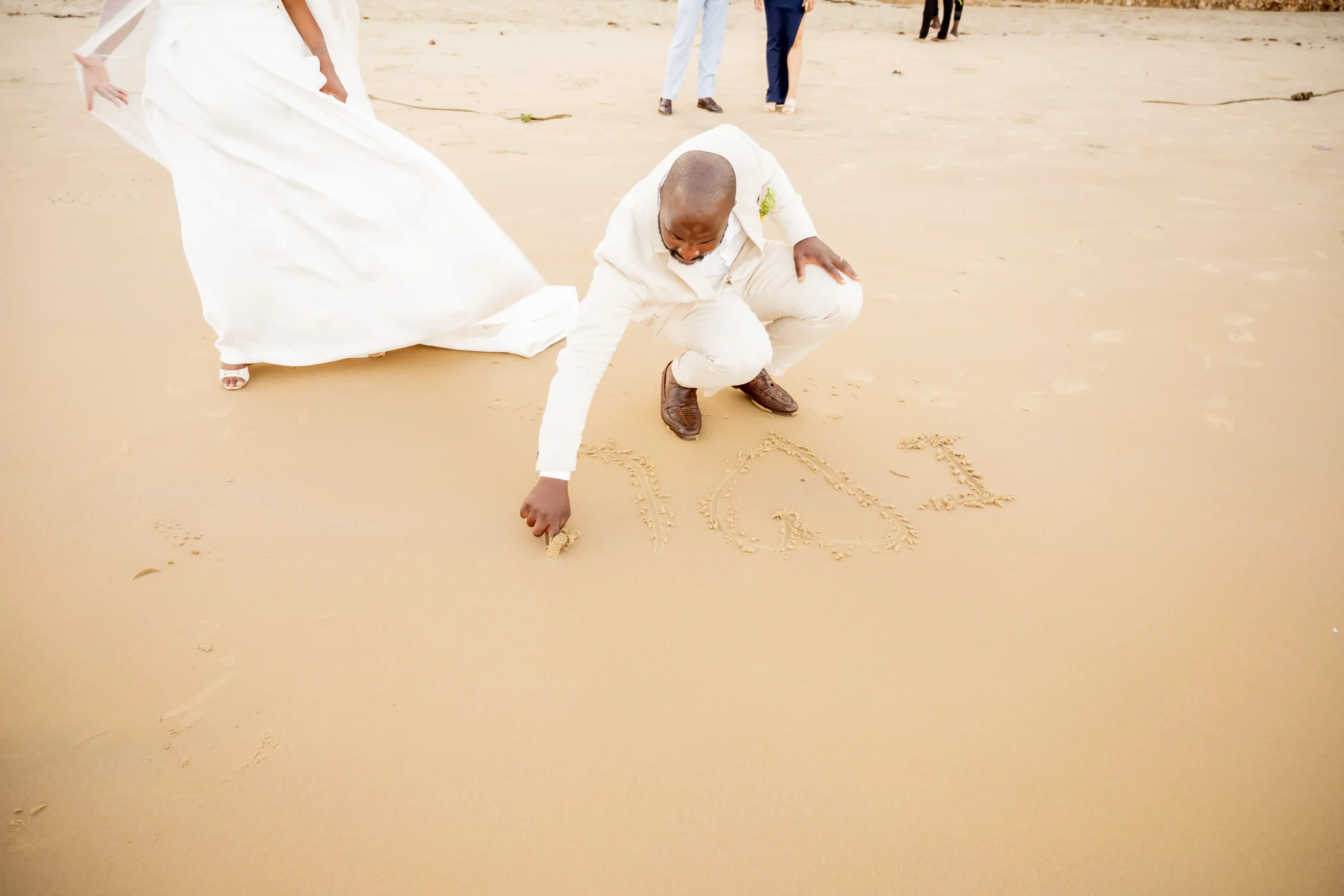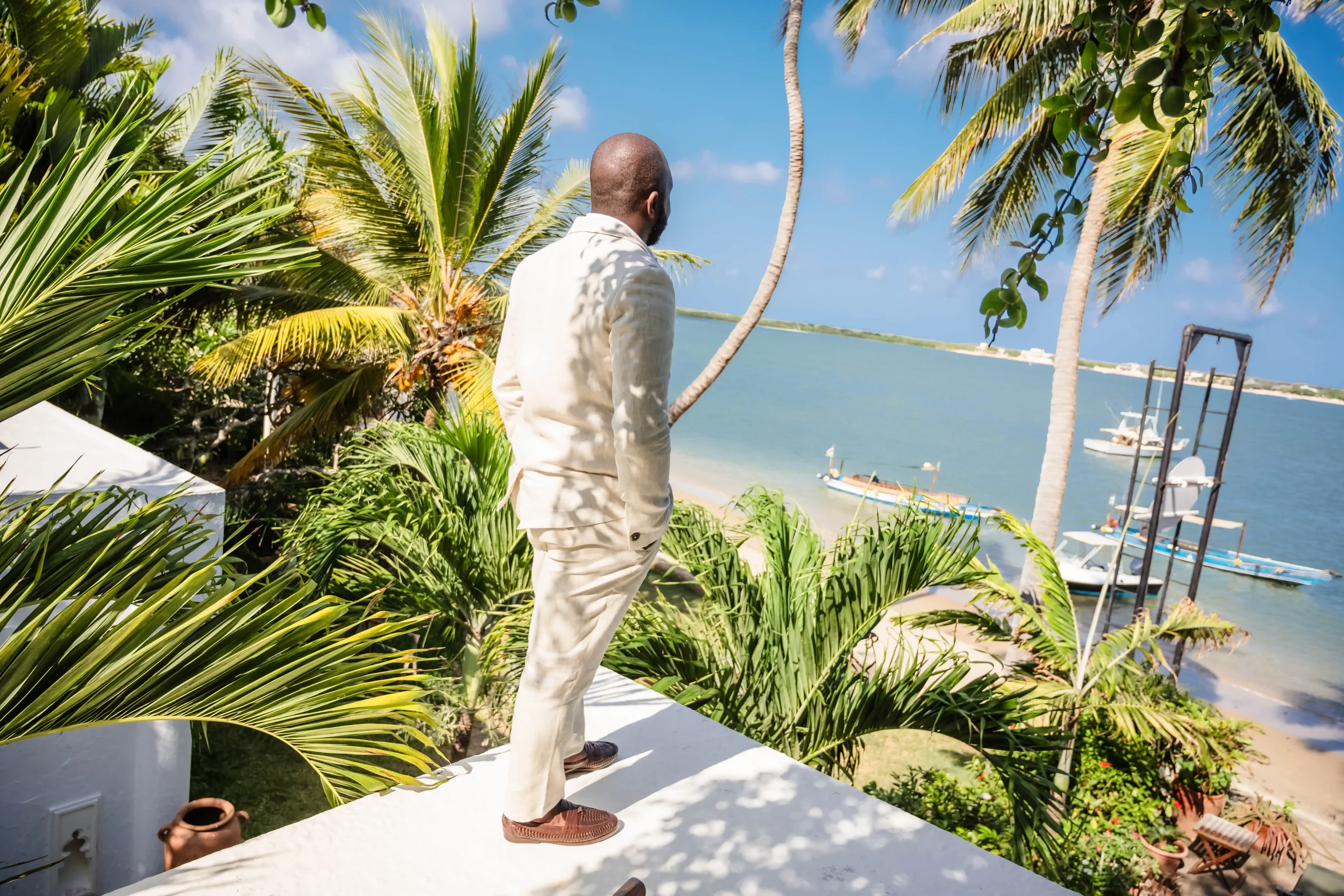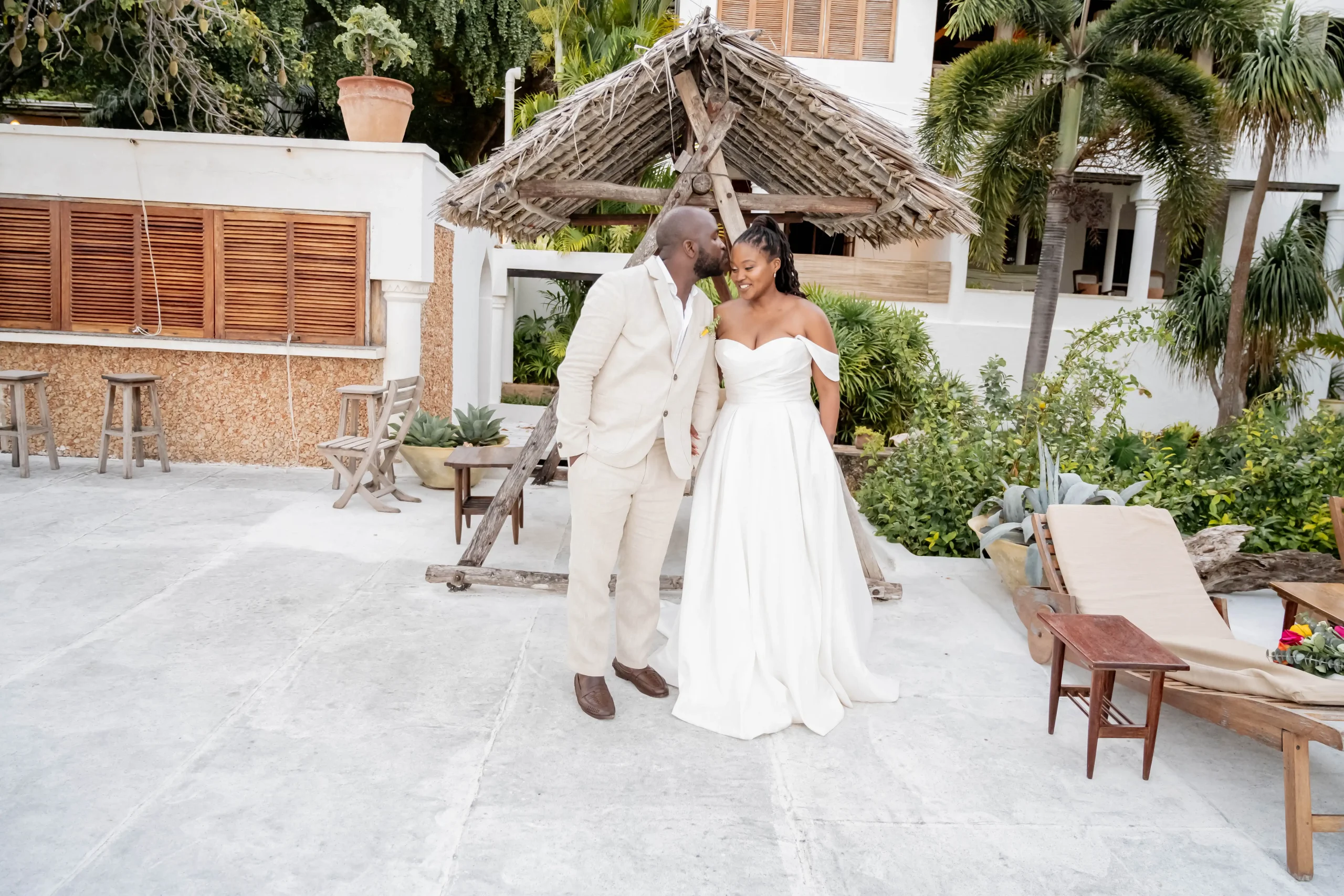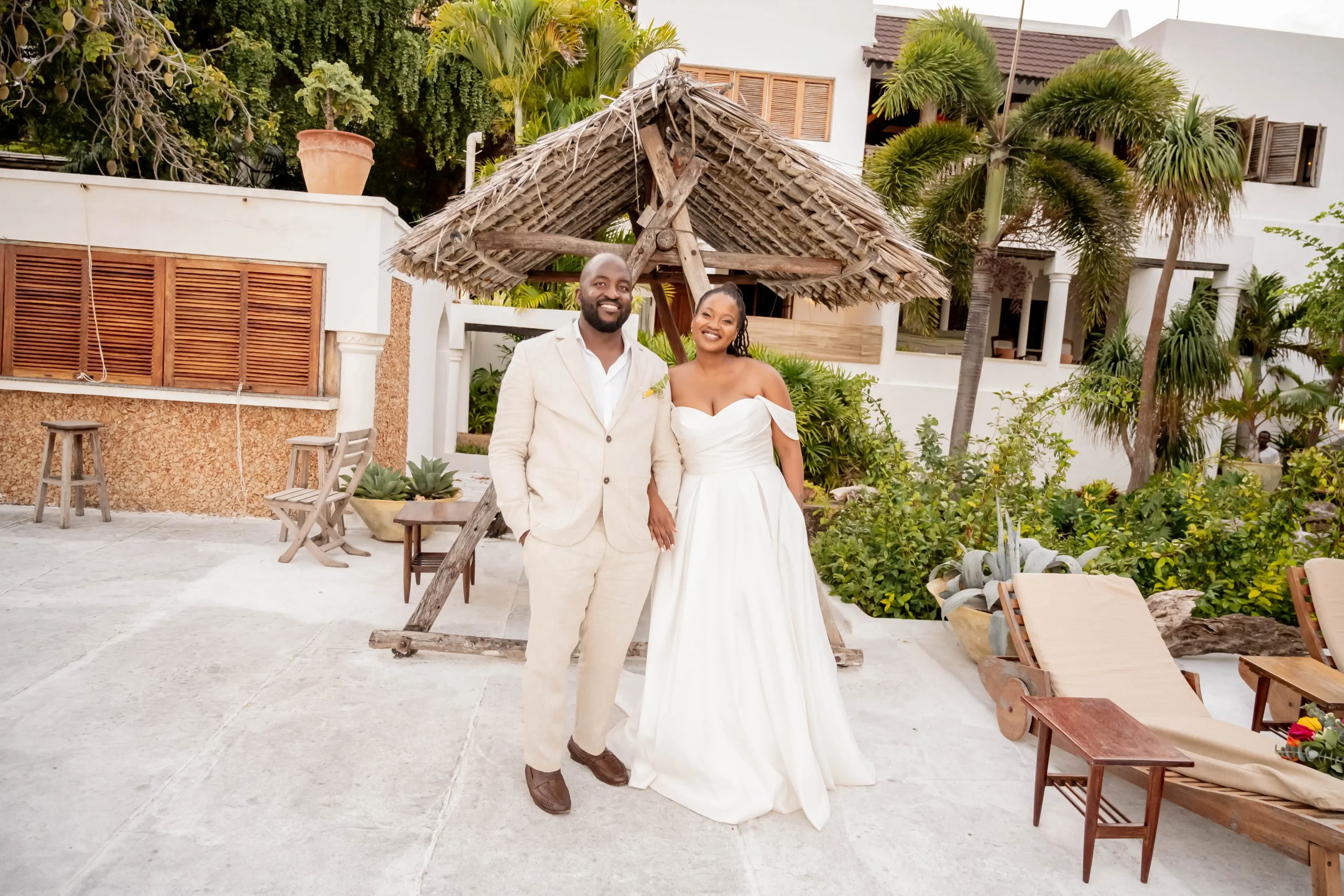 The morning began in a serene beachfront villa, where natural light poured through open windows, illuminating every detail—from Carthy’s elegant dress to Noah’s tailored look. The calm pace of Lamu allowed the couple to enjoy the quiet anticipation before the ceremony fully.